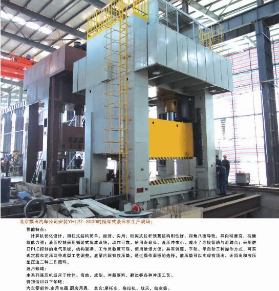 公司能夠?yàn)槭袌鎏峁?2大類500余個品種的標(biāo)準(zhǔn)液壓機(jī)和非標(biāo)專用、精密伺服液壓機(jī)。產(chǎn)品廣泛應(yīng)用于汽車、航天、粉末冶金、船舶、輕工、建筑、電子、家用電器等行業(yè),并代表著我國通用液壓機(jī)的發(fā)展水平。公司生產(chǎn)、設(shè)計(jì)、開發(fā)的液壓機(jī)產(chǎn)品完全能夠滿足國內(nèi)不同用戶多層次的需要。